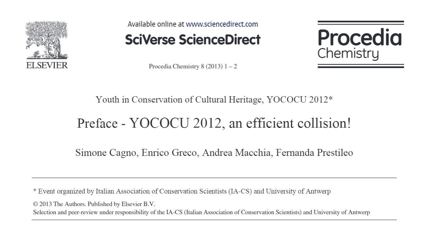 In chemistry for a collision to be efficient, i.e. breaking atomic bonds allowing the formation of new molecules and compounds, the reagents have to collide with an energy that is proportional to the bond strength and a direction that depends on the molecular geometry. This is what happened during YOCOCU 2012 (YOuth in COnservation of CUltural heritage), that took place at the Hof van Liere in Antwerp, Belgium on 18-20 June 2012.