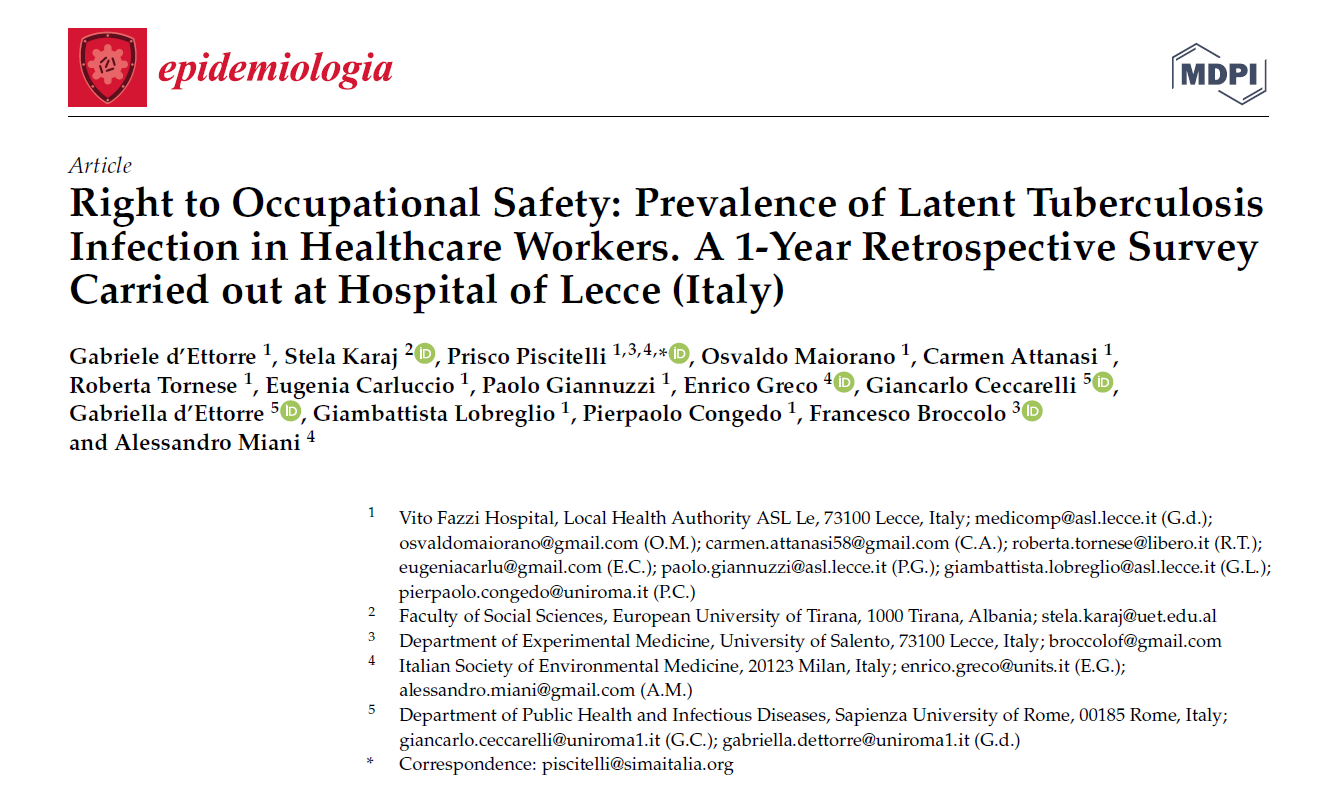 Right to Occupational Safety: Prevalence of Latent Tuberculosis Infection in Healthcare Workers. A 1-Year Retrospective Survey Carried out at Hospital of Lecce (Italy)